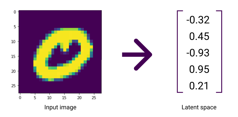 When encoding information, the VAE maps large amounts of information to smaller representations. This compressed representation of information is called the latent space of the VAE, as the original information is hidden in this compressed representation.