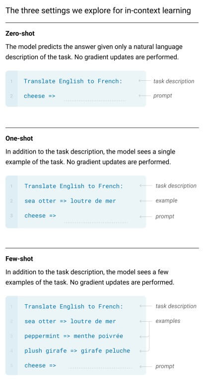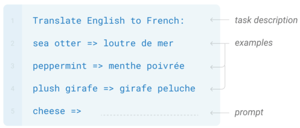 However, with a few-shot approach, it learns more effectively that a text followed by “=>” indicates that the subsequent content should directly be the translation. This nuance is useful, especially when seeking to precisely control the model’s output for commercial applications.