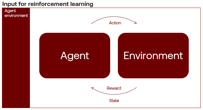 Reinforcement learning problems are when an intelligent agent learns by trial and error using feedback from an interactive environment. The agent learns through rewards and punishments for positive and negative behaviour toward its goal, maximising its cumulative compensation. An example algorithm is the Monte Carlo method.