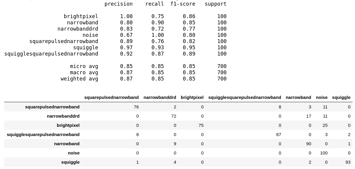 This brings us to the end of our two-part series on leveraging deep learning to further the search of extra-terrestrial intelligence. You saw how we converted radio-signal data into spectrograms and then leveraged the power of transfer learning to build classifiers which performed pretty well even will really low number of training data samples per class.