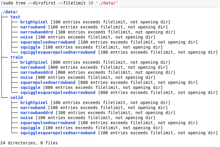 Like we discussed in the previous article, the simulated SETI radio-signal dataset is available in Kaggle. Remember, the processed dataset is available in the primary_small folder. After unzipping its contents this is how the directory structure looks like.